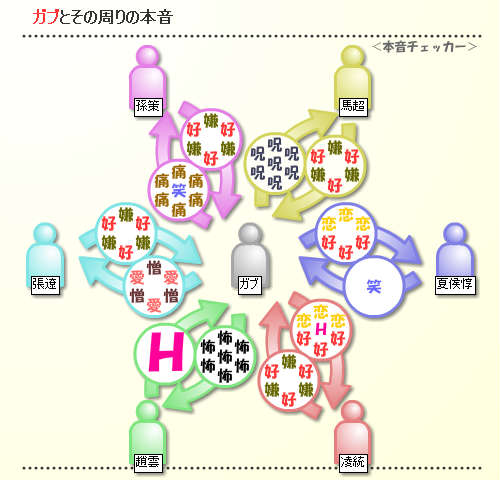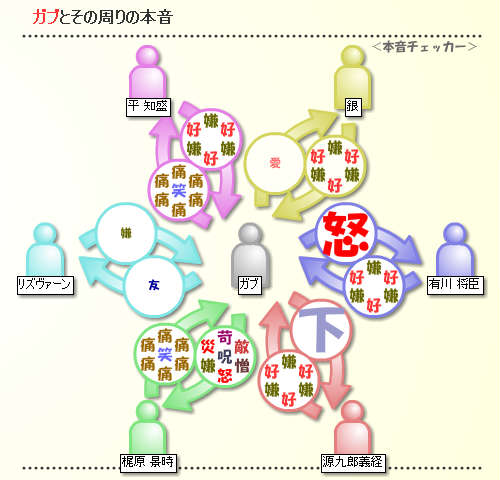 本音チェッカー。 まずは、三國無双編。 なんだか合ってるような気がします(笑) 夏侯惇に小さく笑われてるけど、凌統にめちゃくちゃ恋しちゃってるけど、 私、ぶっちゃけこんな感じで見てます(大笑) ただ、この趙雲、黒趙雲だー。怖いよー。 次は、遥か3編。 私、将臣に対して何そんなに怒ってるんでしょう(笑) しかも、めっちゃ九郎を見下してます。 リズ先生、嫌いならハッキリ大きく嫌いになってください。 その程度の嫌われ方だと、鈍い私は気付きません(涙) そして、景時…何も言うまい。 次は、アンジェ・U-25編。 …なんか……ドロドロしてるような気がしますが、気のせいでしょうか。 やっぱり、聖地って閉鎖されたところだから、こんな関係も有りってか。 でも、レオ様となら、まあ…いいか<何が。 そんな楽しい本音チェッカーは↓から。 http://flashgame.rounder-s.net/honne.cgi 小坊主たちの通帳を作るのに、銀行印が必要になりまして。